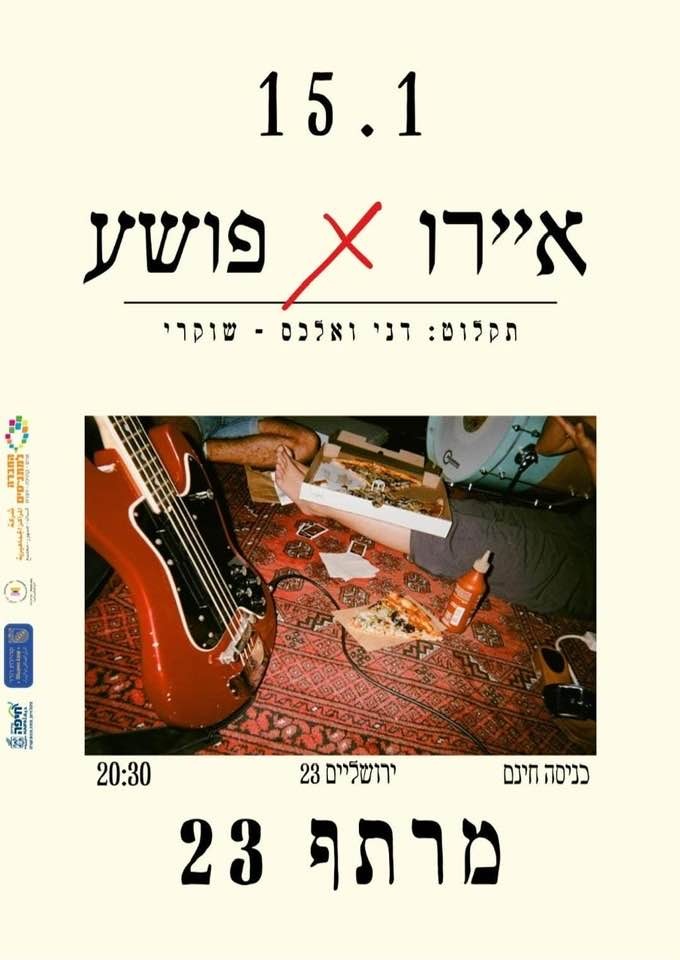 "איירו X פושע", מרתף 23, רחוב ירושלים 23, הדר. חמישי, 15 בינואר שעה 20:30.