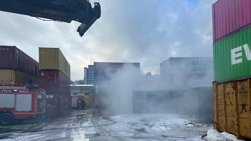 לאחר נפילת הטילים אמש, נפגע מסוף המכולות של חברת התובלה תבור גליל הנמצא בסמוך לנמל חיפה. האש שפרצה ב-15 מכולות כילתה את תכולתן, מוצרי נייר וממתקים, עדיין בוערת. הנזק מוערך במעל 6 מיליון שקלים