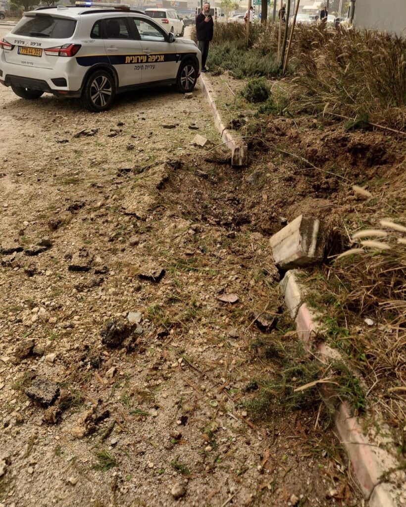 מעיריית חיפה נמסר: ״לפני שעה קלה שוגר לעבר חיפה טיל מצרר, כשחלק מהחימושים נפלו בעיר. צוותים של עיריית חיפה נמצאים במוקדים השונים. אין דיווחים על נפגעים״.