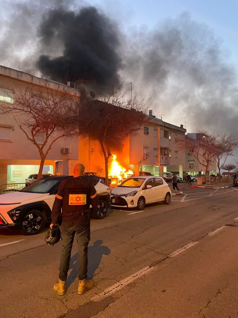 דוברות כבאות והצלה לישראל, מחוז חוף: ״צוותי כיבוי והצלה ממחוז חוף עושים דרכם לשתי זירות אירוע בעקבות דיווחים ראשוניים על פגיעות פריטי אמל״ח״.
